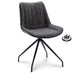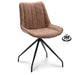 Stoere maar tijdloze 360 graden draaibare armstoel, uitgevoerd in een stoere lederlook stof van het merk Houselabel. Opvallend zijn de verticale lijnen aan de binnenkant van de rugleuning, dit in combinatie met het strakke metalen frame zorgt voor een mooi lijnenspel. is de open rug en het zwart stalen frame.. Geschikt voor binnen, weegt 6.7 kilo.